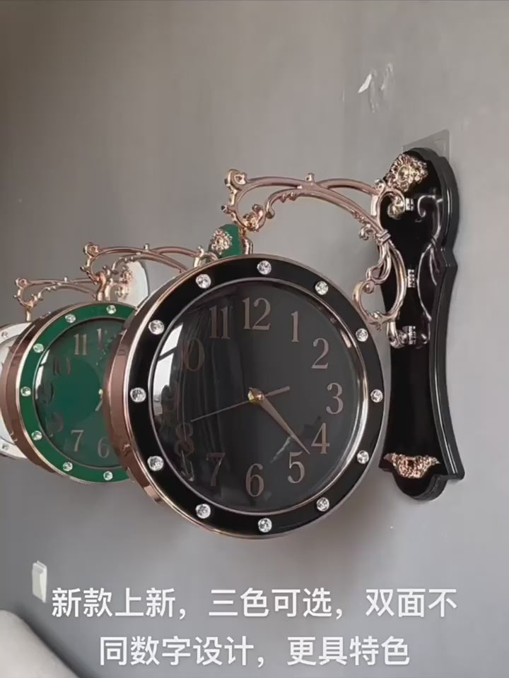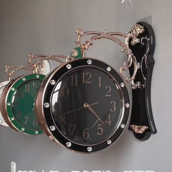 This Modern Luxury Double Sided Clock is a stylish and functional addition to any living room, restaurant, or large space. Featuring silent quartz movement, it ensures precise timekeeping without the disturbance of ticking sounds. The double-sided design allows for easy visibility from multiple angles, making it perfect for spacious areas. Its sleek, modern aesthetic complements various decor styles, adding a touch of sophistication to your room. This wall clock combines luxury with practicality, making it an essential home or office accessory.