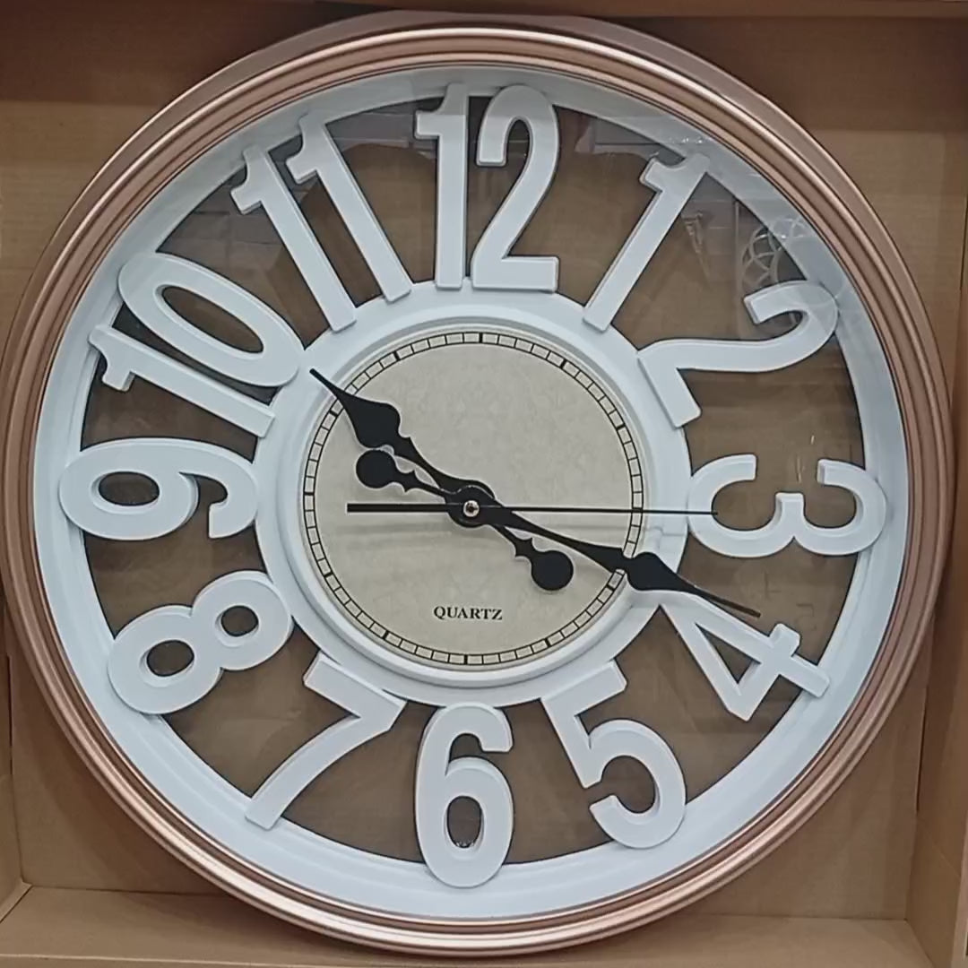 Bring timeless elegance to your walls with this stunning Rose Gold and White Color. Designed with a clean White background and complemented by refined gold hands and markers, it adds a touch of luxury and modern charm to any room. Whether in your living room, bedroom, or office, this clock blends effortlessly with contemporary and classic decor. Its silent sweep movement ensures a peaceful environment, while the premium finish makes it both stylish and durable.